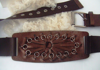 Curea cu catarama "impletita". catarama este din piele maron cu reflexii